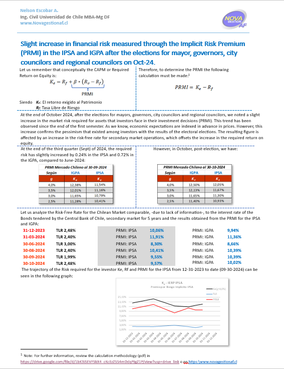 October 2024 Elections and their impact on the market risk (IERP) of the Chilean Market