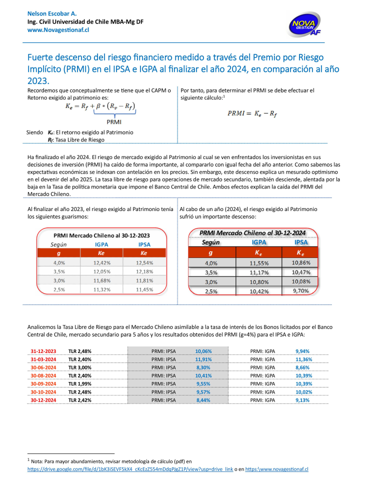 El Premio por Riesgo Implícito (PRMI) chileno cierra el año 2024 con un descenso significativo