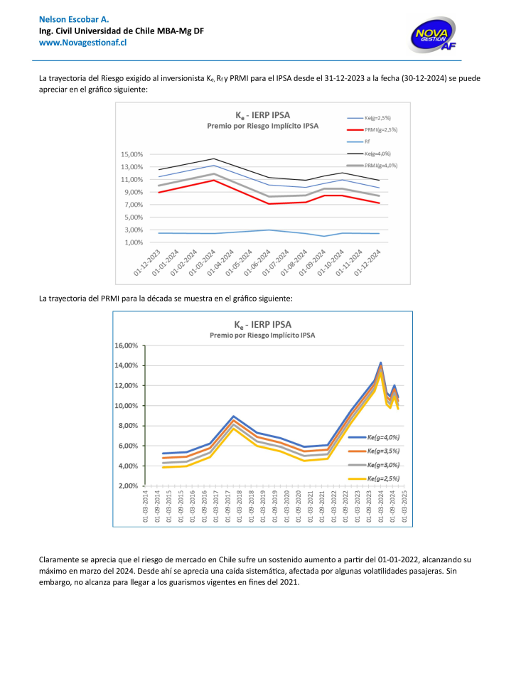 Ha cerrado el año 2024 y la Prima por Riesgo Implícito del mercado chileno (PRMI) ha experimentado un fuerte retroceso, en comparación con el año 2023 recién pasado. Los guarimos descendieron en relación con la última medición del 31-12-2023. Dichos valores se calculan a partir de los índices bursátiles IPSA e IGPA.