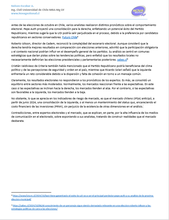 Elecciones Oct ´2024 y su impacto en el Riesgo de Mercado (PRMI) del Mercado Chileno