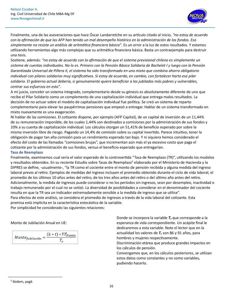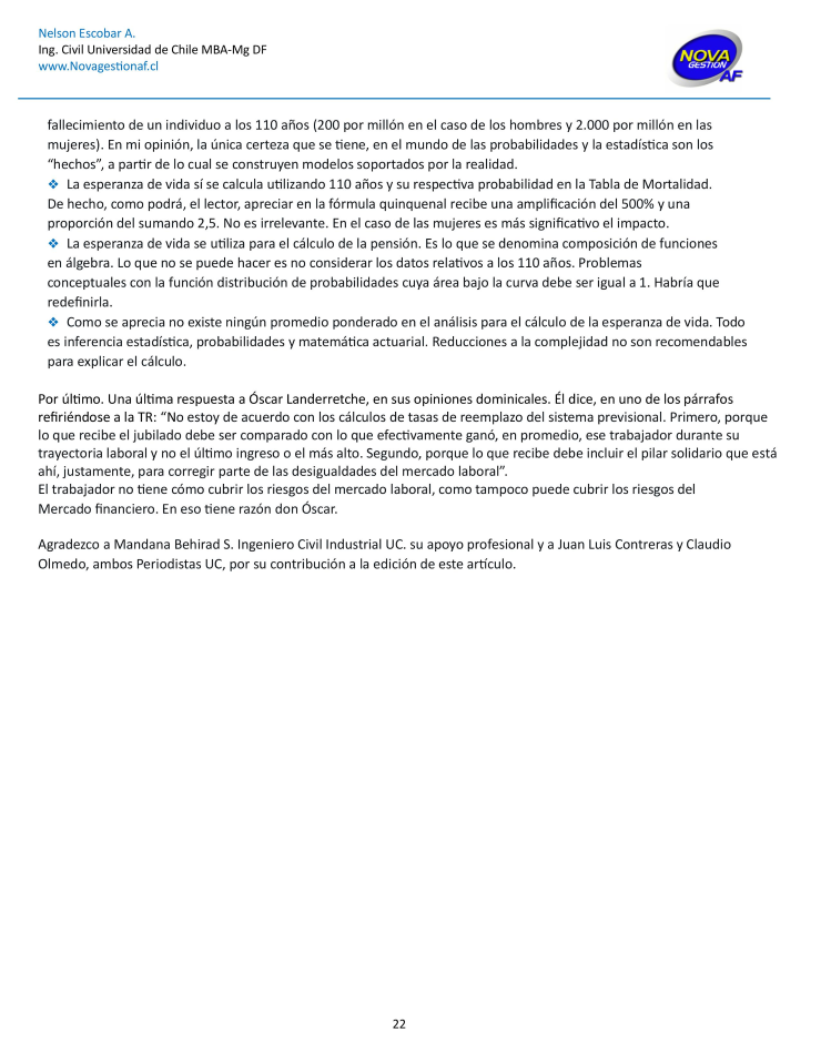 Frente a un tema de tanta importancia y con el particular enfoque de nuestra Empresa, -liderados por nuestros socios Nelson Escobar Arguedas y Mandana Behirad Safiri-, ponemos a disposición de la Comunidad, nuestras reflexiones acerca de las pensiones en Chile. "Hablemos de Pensiones en Chile", es un artículo que, esperamos que sea un aporte a la discusión y difusión de este candente tema. Si le interesa visualizar el documento en PDF, visitar https://drive.google.com/file/d/1EEdieWcWIWjxTPFeZUI2cq_VIAQMRRGE/view?u... |