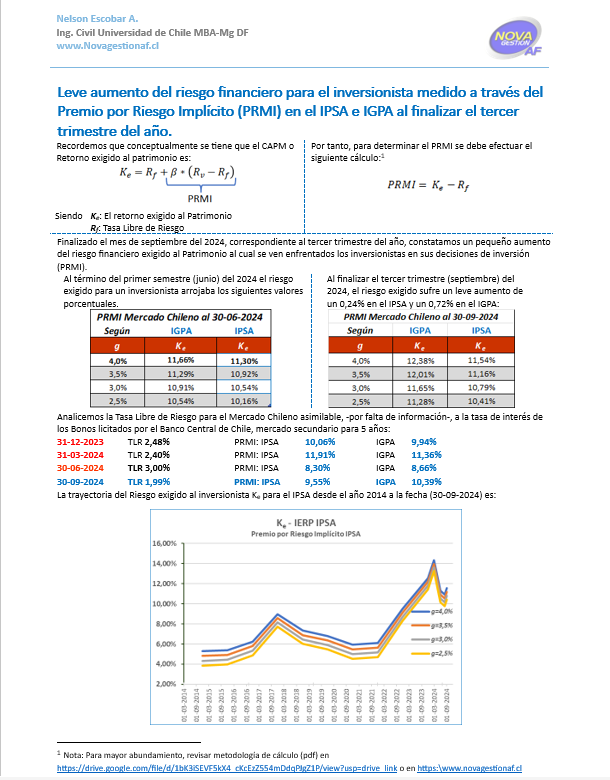 Leve Aumento de la Prima por Riesgo Implícito (PRMI) del Mercado Chileno al 30-09-2024